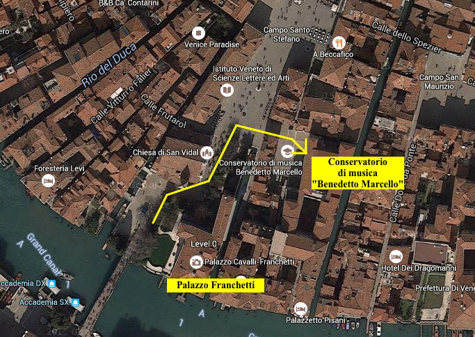 Palazzo Franchetti (also known as Palazzo Cavalli-Franchetti) is the official venue of this IUTAM Symposium. It is located in the heart of Venice (see a large aerial view HERE), a stroll away from Piazza S. Marco (see a close-up view HERE). More information on the conference venue is given further below. Here we give some information on how to reach Palazzo Franchetti.